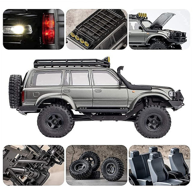 This 1/18 scale RC model is packed with authentic details and features that make it feel just like the real thing. From the injection-moulded hard body and functional hood to the scale interior features and multifunctional light control system, every aspect of the Landcruiser has been carefully recreated in miniature form. And with a Rhino bumper kit, roof rack, and high traction M/T tires with 1.0-inch internal bead lock wheels, this RC model is ready to tackle any terrain.